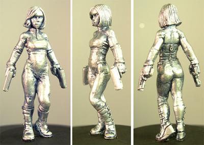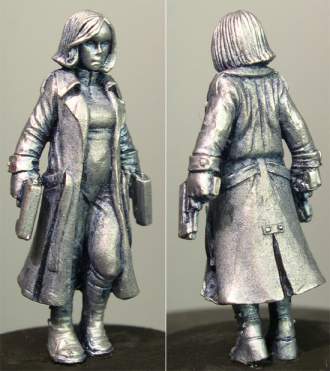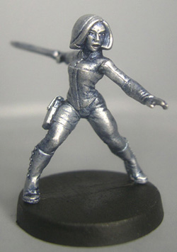 Eine neue Abenteurerin mit Schwert und Pistole. Ich mag den schnörkellosen Science-Fiction Look der Miniatur. Star Wars, Traveller, Star Trek - Überall passt das Modell rein. Auch für Gegenwart- und Cyberpunkspiele ist sie als Agent oder Einbrecher ideal.