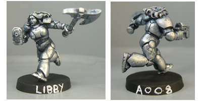 Dieses Modell stand schon länger auf Kevins Schreibtisch und wurde erst jetzt fertig. Die Fans hatten schon lange gefordert, daß die Fantasy Libbies eine SF-Schwester bekommen. Wer seine Sisters of Battle bei 40k oder seine Assault Marines bei Void um ein außergewöhnliches Mitglied erweitern will, ist mit dieser Libby bestens bedient.