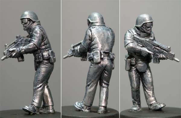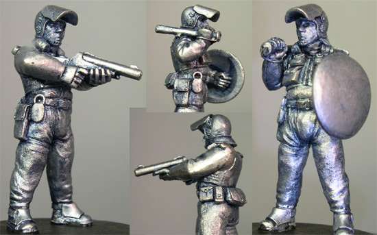Und der Dritte im Bunde der Polizei Ihrer Majestät. Neil ist in vollem "Demodress" und wird mit den Armvarianten "Schlagstock und Schild" sowie "Granatwerfer" geliefert.