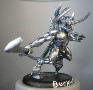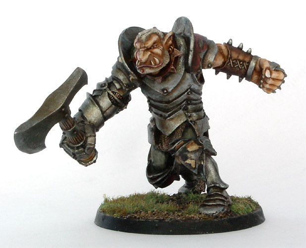 Dieser Oger ist im Gegensatz zu Mjolnir traditioneller gehalten. Während andere Oger oft nur mit Lumpen und Kettenhemdteilen bekleidet sind, hat dieses Modell eine Vollrüstung an. Mit dieser Ausrüstung bietet sich der Oger geradezu als Anführer, Champion oder Charakterfigur an.