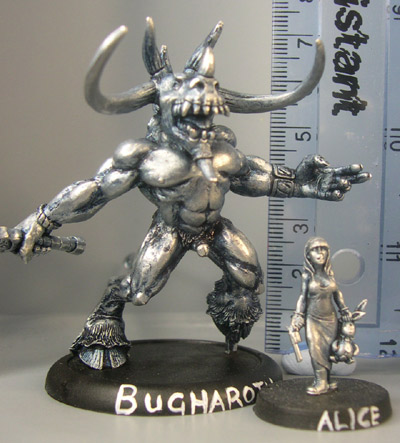 Der erste Hasslefree Dämon - Muß man mehr sagen? Um eine Vorstellung zu bekommen, wieviel Metall in der Figur steckt, zeigt das rechte Bild einen Größenvergleich zu einem menschengroßen Modell. Fett oder?