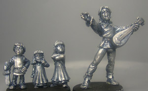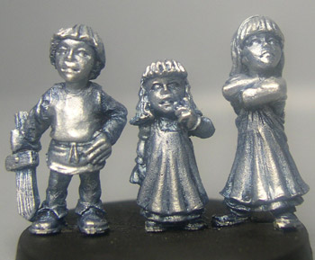 Ein Dorf braucht auch spielende Kinder...Um Euch zu zeigen, wie klein die drei Racker wirklich sind, stehen sie im rechten Bild neben dem Barden. Viel Spaß beim Anmalen sag ich dazu nur :-).
